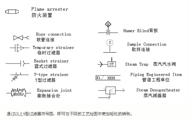 Y型過濾器是用于介質(zhì)管道的重要設(shè)備,起著過濾雜質(zhì)的作用。Y型過濾器在每個工程中都會設(shè)有不同的設(shè)計圖,不同的零部配件所標(biāo)示的符號也會有所不同,那么Y型過濾器的符號是如何標(biāo)示的呢?